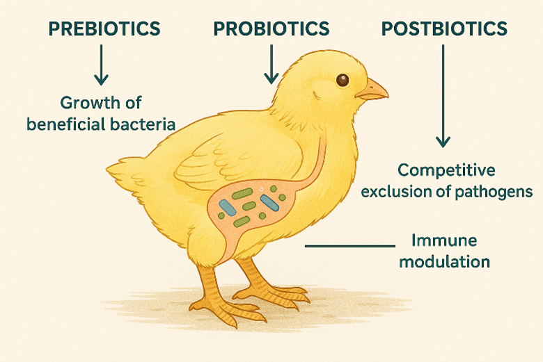 With the global shift away from antibiotic growth promoters in poultry production, the focus has turned to natural alternatives that support gut health and overall performance. Among the most promising are prebiotics, probiotics, and postbiotics—each playing a distinct but complementary role in maintaining a healthy gastrointestinal tract (GIT) in poultry.